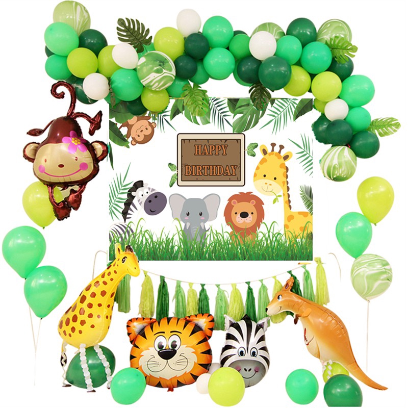 Safari Animal Balloon Garland Green Forest Party Balloon Arch Kit 1st Birthday Party Balloon Banner Happy Birthday Backdrops Shopee Indonesia