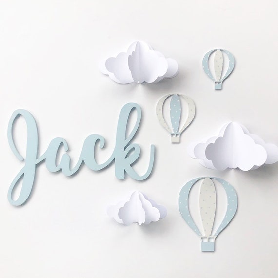 Custom Name Wall Art Hot Air Balloons And Clouds 3d Paper Wall Etsy