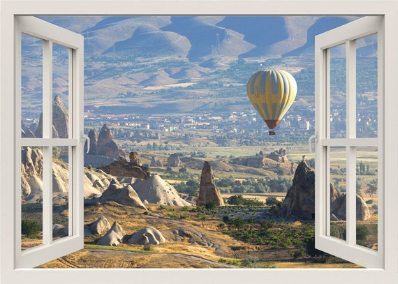 3d Window Wall Decal Hot Air Balloons Wall Decal Window View Etsy