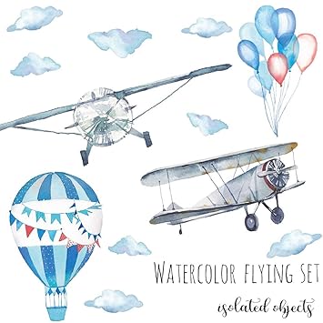 Amazon Com Amaonm Removable Watercolor Airplane Balloon Clouds Wall Stickers 3d Hot Air Balloon Wall Decal Diy Lettering Art Decor For Home Wall Kids Bedroom Boy And Girls Nursery Living Room Playroom Classroom