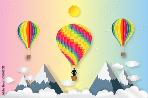 Businessman In The Colorful Hot Air Balloon And Sunny Under Pastels Sky Background As Paper Art Craft Style And Business Challenge Concept Vector Illustration Stock Vector Adobe Stock