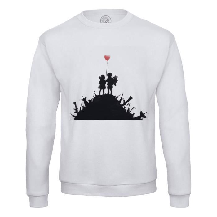 Sweat Shirt Homme Banksy Guerre Enfants Ballon Rouge Arme Street Art Blanc Cdiscount Pret A Porter