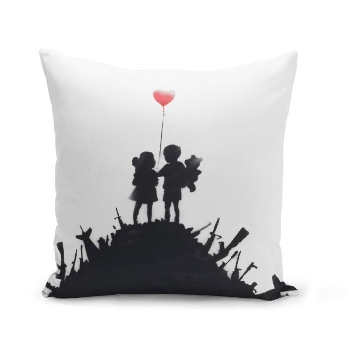 Housse De Coussin 40x40 Cm Banksy Guerre Enfants Ballon Rouge Arme Street Art Cdiscount Maison